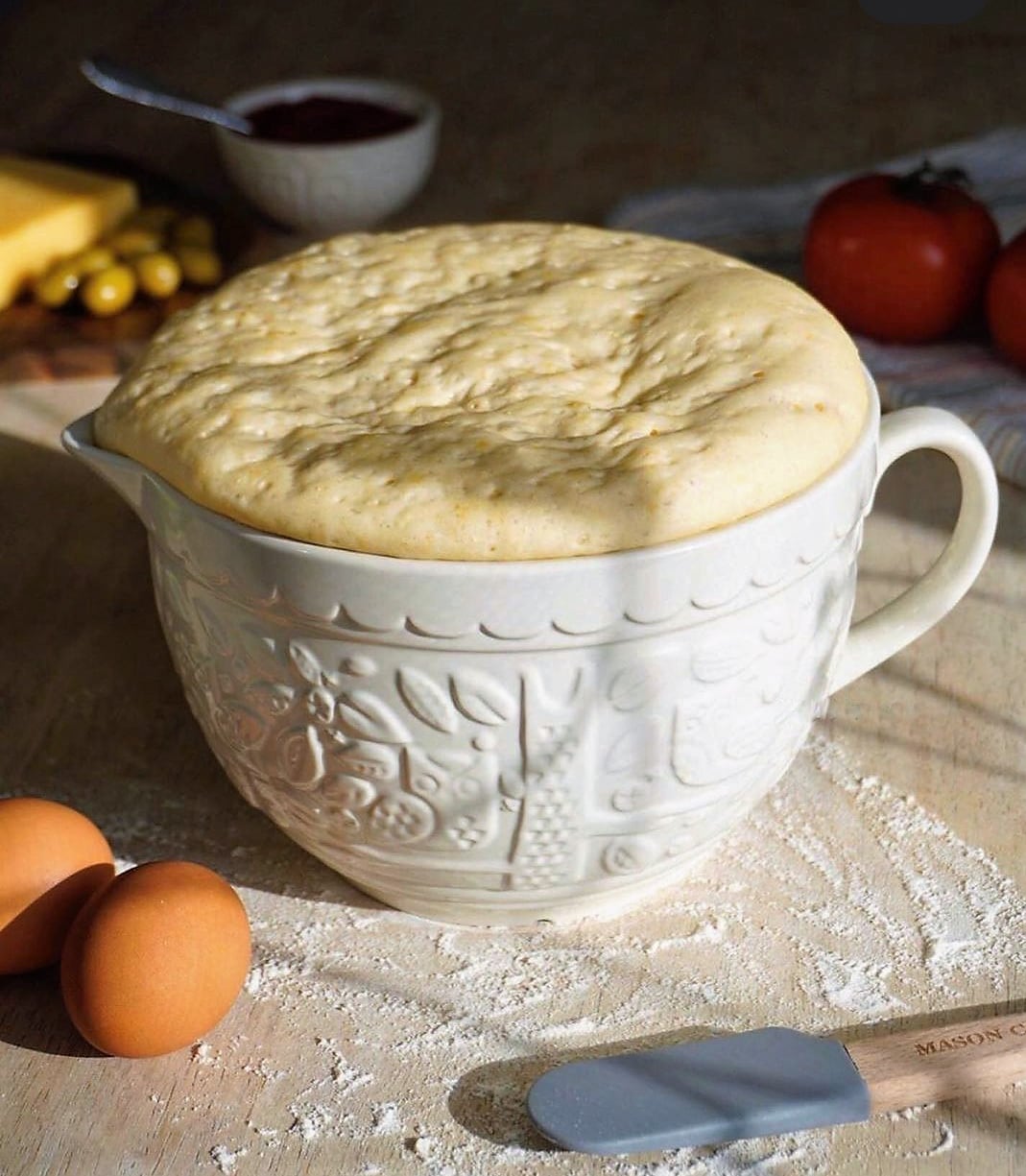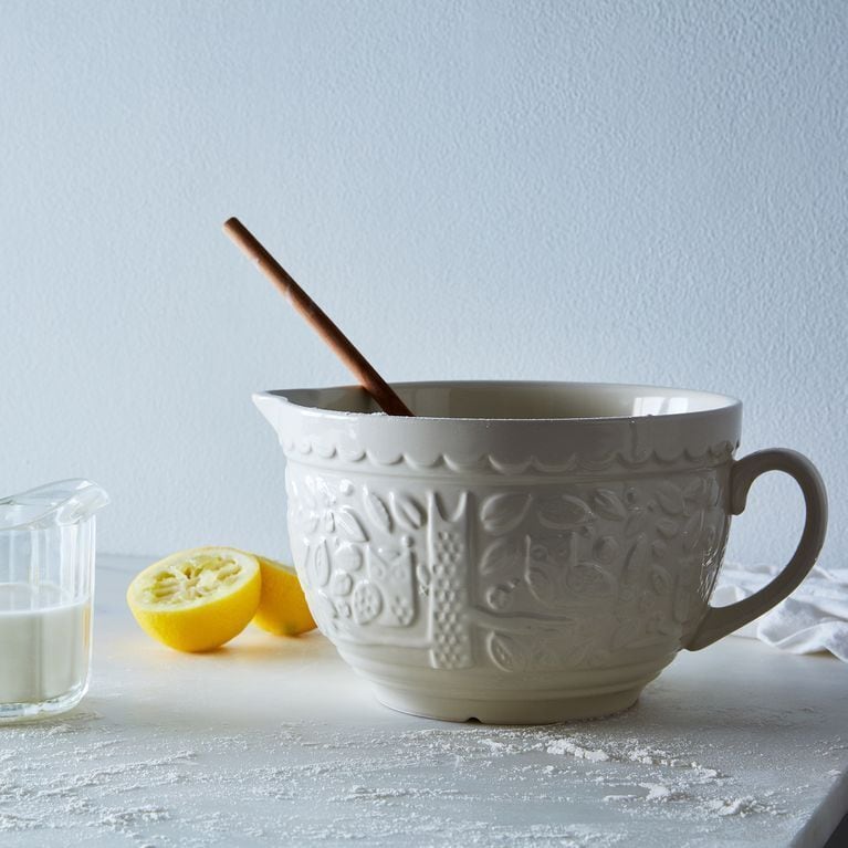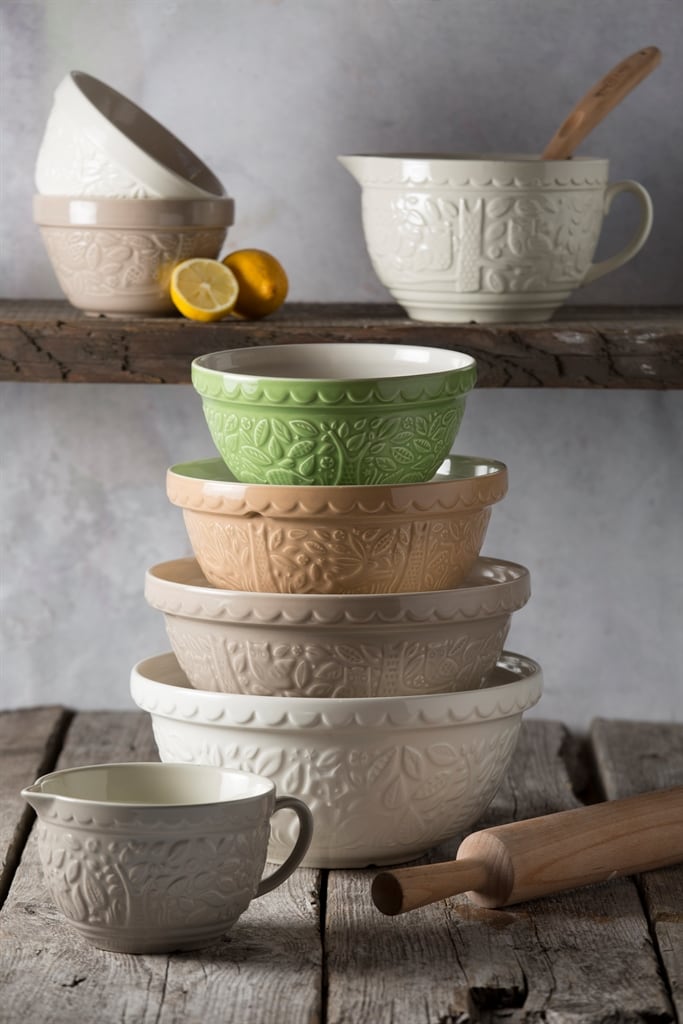 取っ手付きミキシングボウル。ハンドルがついているので食材を和えたりするのにも便利です。又、外側のインザフォレストの柄が突起しているので腕の中でこねる時でも滑りずらく、こねたりかき混ぜたりが楽です。