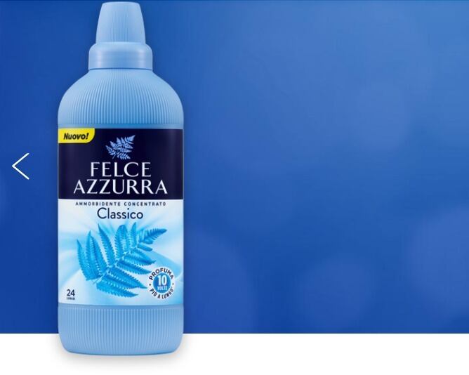 伝統的なフェルチェ・アズーラの香料をベースとした、フレッシュで心地よい香りが特徴です。イタリアでは柔軟剤と言えばこの香りが定番です。