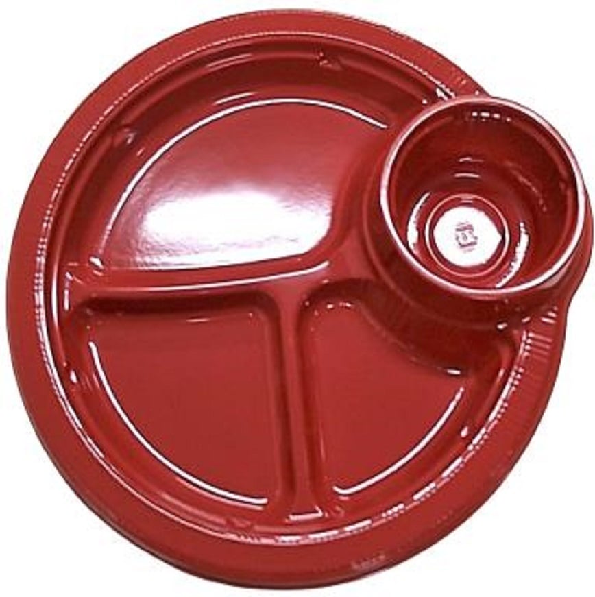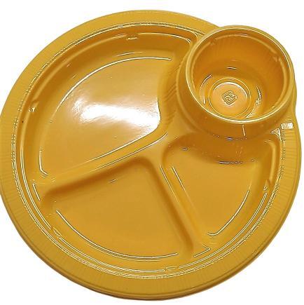 いろいろなお料理を取分け出来る3分割のコンパートメントプレート+便利なカップホルダーが付いた便利プレート。