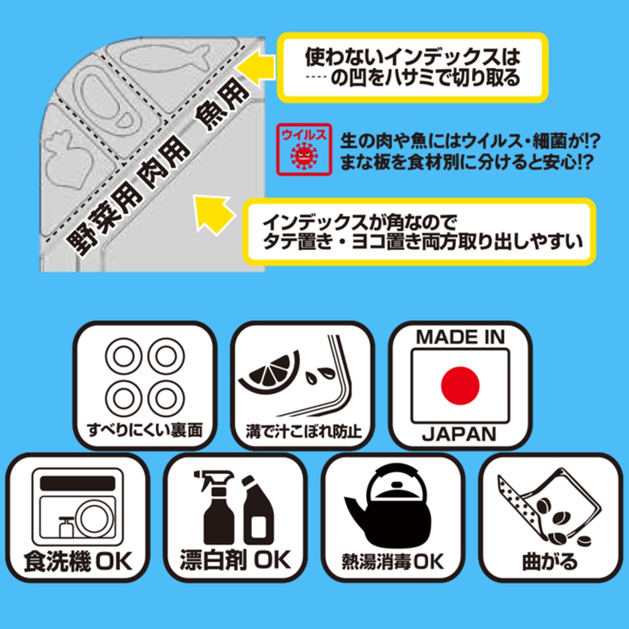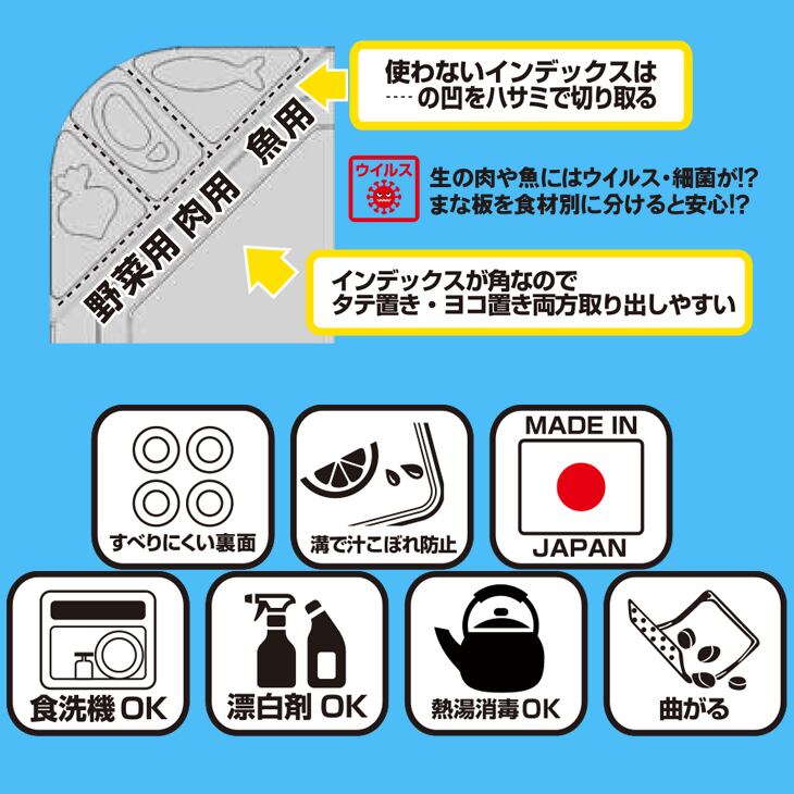 ※ハサミで切り取るインデックス付で野菜・肉・魚に使い分けてウイルス・細菌に安心!